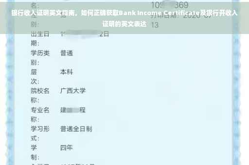 摘要:本指南介绍了如何正确获取银行收入证明英文版本(Bank Income Certificate)。通过简单的步骤,您将了解如何在银行开具收入证明,并了解相关的英文表达。本指南旨在帮助您顺利获取收入证明,以满足个人或机构的需求。