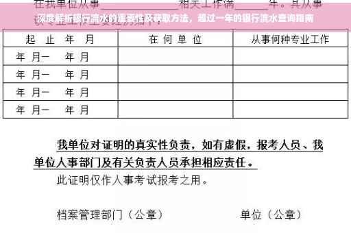 摘要:银行流水账单对于个人和企业来说至关重要,可作为信用评估的重要依据。获取银行流水超过一年的方法包括线下查询和线上查询两种方式。线下查询需携带有效证件前往银行柜台办理,而线上查询则可通过网上银行或手机银行等渠道进行。本文深度解析了获取银行流水的流程与注意事项,帮助个人和企业更好地管理财务。