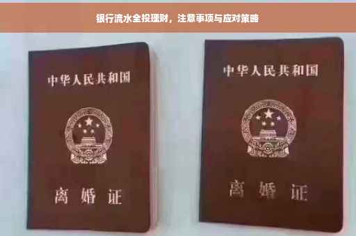 摘要:银行流水全买了理财,需要注意以下几点。确认理财产品的风险和收益是否符合自身承受能力和理财目标。留意资金流动性,确保随时可取出所需资金。合理分散投资,降低风险。定期查看银行流水账单,确保理财收益及时到账。银行流水全买了理财后,应保持关注并做好管理。