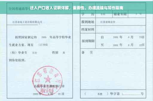 随着城市化进程的加速和人口流动性的增加,迁入户口成为许多人的需求,在办理迁入户口的过程中,收入证明作为重要材料之一,对于顺利办理户口迁移至关重要,本文将详细介绍迁入户口收入证明的重要性、办理流程及相关注意事项,帮助广大市民顺利办理户口迁移。