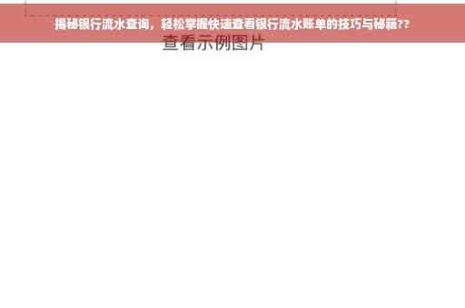 摘要:本文将为你揭秘银行流水查询的技巧和方法,让你轻松掌握如何快速查看银行流水账单。通过阅读本文,你将了解到如何高效利用银行系统工具,快速浏览和筛选流水记录,以便更好地管理个人财务。无论你是个人用户还是企业管理人员,本文都将为你提供实用的技巧和工具,助你轻松掌握银行流水查询方法。
