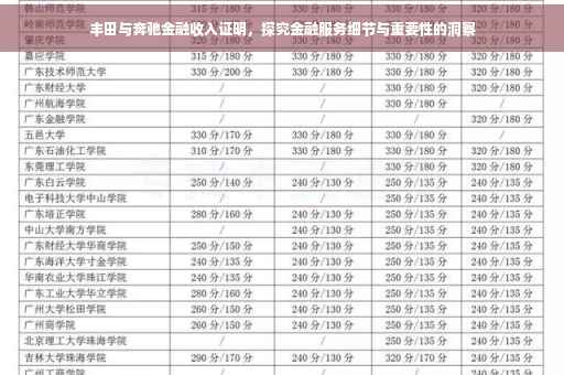 摘要:本文探讨了金融服务的重要性,特别是针对丰田金融和奔驰金融的收入证明。文章指出,金融服务的细节对于个人和企业的发展至关重要,而丰田金融和奔驰金融作为行业领军者,其提供的收入证明更是体现了金融服务在日常生活中的不可或缺性。通过探究这些细节,人们能更好地理解金融服务的重要性,并认识到金融收入证明在职业发展中的关键作用。