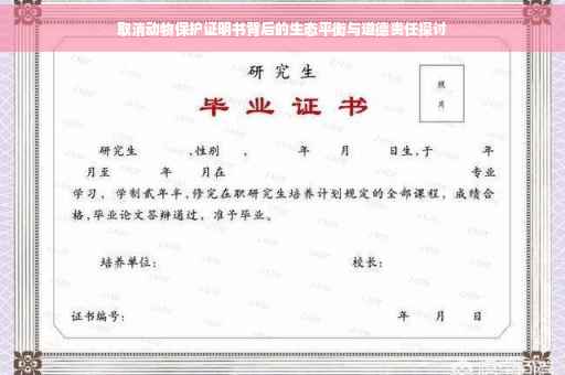 取消所有动物保护证明书是一个复杂而敏感的问题,涉及到生态平衡、道德责任、经济发展等多方面因素,我们在探讨这一问题时,应全面考虑其可能带来的影响,并承担起应有的道德责任,我们应积极寻找平衡发展与保护的策略,确保动物福利和生态平衡得到保障,通过加强法律法规建设、提高公众意识、强化监管与监测、鼓励志愿者参与等措施,我们有望实现人与自然的和谐共生。