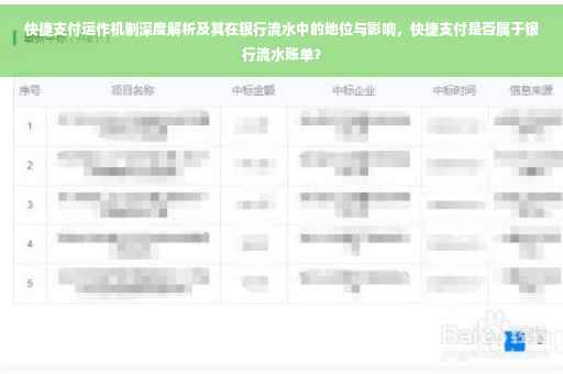银行流水是指银行账户中资金的流入和流出记录,随着电子商务和移动支付的普及,快捷支付在银行流水中的地位日益重要,以下是快捷支付在银行流水中的主要作用: