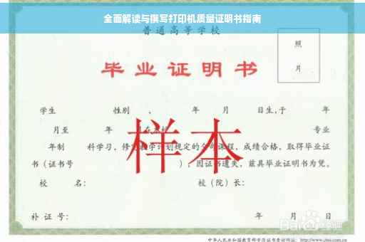 摘要:本文将全面解读打印机质量证明书,介绍如何撰写打印机质量证明书。内容包括质量证明书的基本格式、关键信息点以及注意事项等。通过本文,读者可以了解如何准确、完整地证明打印机的质量,确保产品符合相关标准和客户要求。摘要字数在100-200字之间。