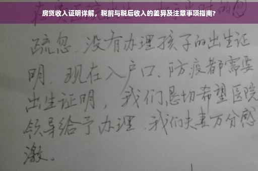 税前与税后收入之间存在明显的差异,具体差异因个人所得、地区、行业等因素而异,在申请房贷时,申请人需要注意以下事项:
