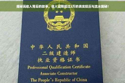揭秘高收入背后的故事,收入超过2万的真实经历。想要证明高收入,银行流水记录是必备的。本文通过真实经历,探讨高收入背后的艰辛与付出,同时介绍如何通过合理的流水记录来验证收入状况。这是一个充满挑战和机遇的时代,高收入并非遥不可及的梦想。