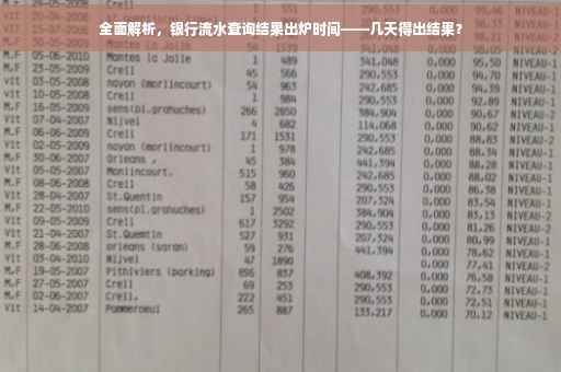 在现代社会,银行业务日益便捷化,银行流水作为个人或企业经济活动的记录,其查询结果出炉时间对于个人和企业来说至关重要,本文将详细解析银行流水查询结果出炉时间、查询方式以及注意事项,帮助读者更好地掌握这一信息。