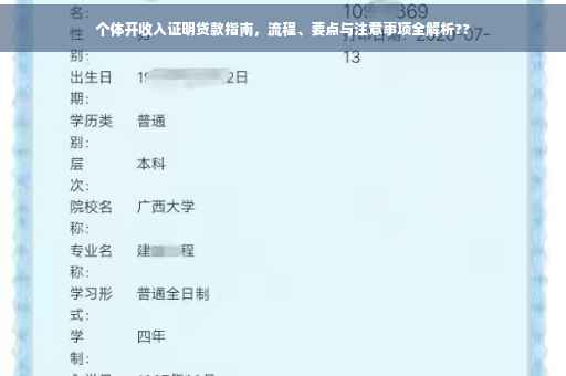 摘要:个体开收入证明贷款需要遵循一定的流程和要点,包括准备相关材料、填写申请表格、提交审核等步骤。在开具收入证明时,需要注意证明内容的真实性、完整性以及格式规范。个体还需关注贷款机构的信誉度和利率等事项,确保贷款安全和合法性。注意事项包括防范虚假证明、保护个人信息等。通过了解这些流程和要点,个体可以更加顺利地开具收入证明并成功获得贷款。