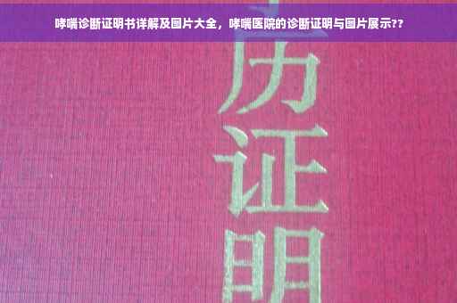 哮喘诊断证明书是确诊哮喘的重要文件,本文详细介绍了其重要性、内容、获取流程以及相关图片的展示,希望本文能帮助您更好地了解哮喘诊断证明书,为您的求医之路提供便利,如有疑虑或需要帮助,请及时咨询专业医生或医院。(注:以上内容仅供参考,具体情况可能因医院政策而异,如有需要,请咨询相关医院。)