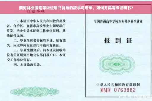 摘要:柴河林业医院等级证明书背后隐藏着故事和启示。想要获取这份证明,需要遵循一定的流程和规定。本文将介绍如何开具柴河林业医院等级证明书,同时探讨其背后的意义,包括医院等级的重要性及其对病患和医疗体系的影响。通过了解这些,可以更好地理解医疗体系的发展和改革。