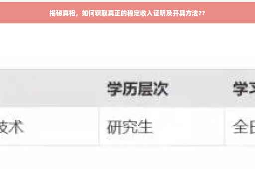揭秘真相:关于稳定收入证明的存在与获取方式。想知道是否存在真正的稳定收入证明吗?想知道如何开具这样的证明吗?本文将为你揭开谜团,告诉你稳定收入证明的重要性和开具方法。从收入稳定性角度,为你提供实用建议,助你顺利获取稳定收入证明。无论你是职场人士还是创业者,都能从中受益。