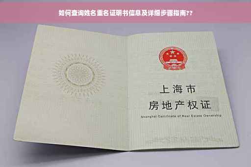 摘要:想要查询姓名重名证明书,可以通过访问当地公安局或户籍管理部门的官方网站,在姓名查询系统中输入想要查询的姓名,即可得到相关重名信息。也可以前往当地派出所或民政局进行线下查询,提供相关证件和申请表格,即可获得姓名重名证明书。查询过程中需注意保护个人隐私和信息安全。