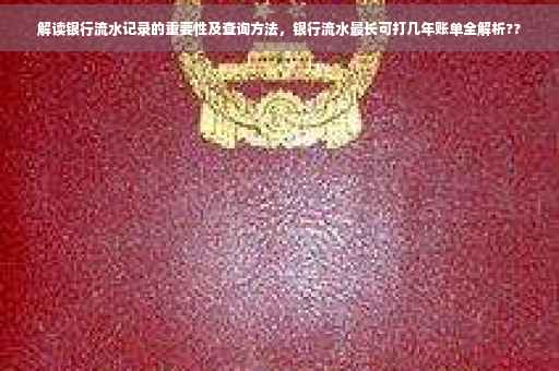 摘要:银行流水记录的重要性不言而喻,其查询方法和期限因银行而异。银行流水最长可以打近几年的账单,具体时间范围可能因银行政策而异。本文将解读银行流水记录的重要性,包括其在贷款申请、财务管理等方面的作用,并介绍查询银行流水的方法。让读者了解如何获取自己的银行流水记录,以便更好地管理个人财务。