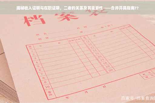 在现代社会,随着职场竞争的日益激烈,越来越多的人开始重视个人职业发展和福利待遇,在这个过程中,收入证明和在职证明成为了人们关注的焦点,本文将详细介绍这两个证明的内容、区别、用途及其重要性,帮助读者更好地了解和使用这两个证明。