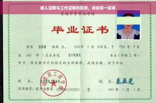 收入证明和工作证明并非同一回事。收入证明通常指的是证明个人在某段时间内的收入状况,包括工资、奖金、津贴等,而工作证明则是指证明个人的职业身份和工作经历,包括工作单位、职位、工作时间等。虽然两者都与个人的工作情况有关,但它们所涵盖的内容和证明的目的不同。收入证明并非等同于工作证明。