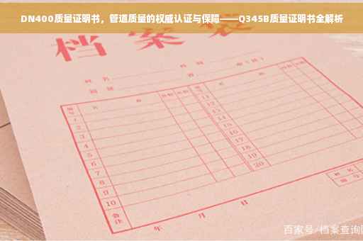 随着工业建设的快速发展,管道作为重要的基础设施组成部分,其质量安全问题日益受到关注,DN400管道作为一种常见的管道规格,广泛应用于供水、排水、燃气、石油等领域,为了确保DN400管道的质量安全,质量证明书成为了评估管道质量的重要依据,本文将详细介绍DN400质量证明书的作用、内容及其重要性。