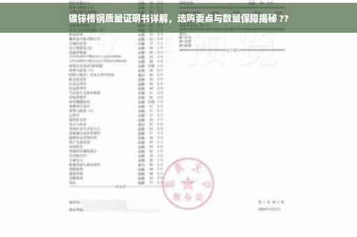 本文旨在详细介绍镀锌槽钢质量证明书的含义、作用及重要性,以帮助消费者更好地了解如何选购优质的槽钢,随着其在建筑、机械、车辆制造等行业的广泛应用,镀锌槽钢的需求量逐渐增加,其质量问题也备受关注。