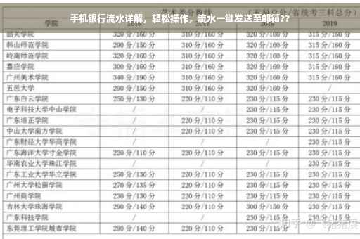 摘要:手机银行可以轻松操作发流水,详细步骤一目了然。用户只需登录银行APP,进入账户明细,选择需要发送的时间段和流水信息,填写接收邮件的邮箱地址,即可完成流水发送到邮箱的操作。此功能方便用户随时随地查看和管理自己的账务情况,提高了银行业务的便捷性和效率。