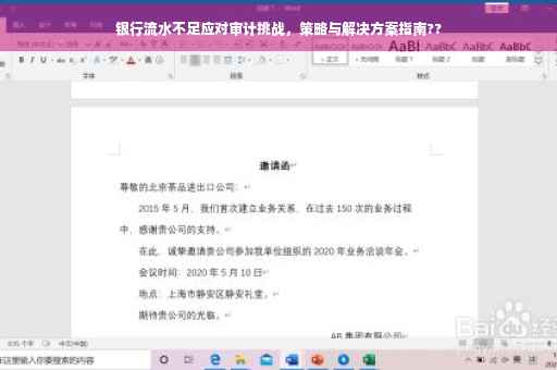摘要:针对银行审计贷款流水不足的问题,应对策略包括:首先深入了解借款人财务状况和信用记录,评估其还款能力;银行可优化贷款审批流程,采取灵活的贷款政策,如增加抵押物或担保人;建议借款人积极改善自身财务状况,提高收入证明的可信度。解决方案包括加强财务管理,寻求第三方担保或选择其他贷款途径。解决银行审计贷款流水不足需综合考虑银行政策和借款人自身情况。