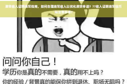 摘要:房贷收入证明是购房贷款的重要材料之一,填写时需谨慎。合理填写收入情况,应提供真实且符合自身经济能力的收入证明,避免夸大或虚假陈述。建议根据个人的实际收入情况,结合贷款额度、还款期限等因素,适当调整收入数额。还需注意收入证明格式规范,确保信息的完整性和准确性。最终目的是让贷款机构了解申请者的还款能力,顺利获得房贷批准。