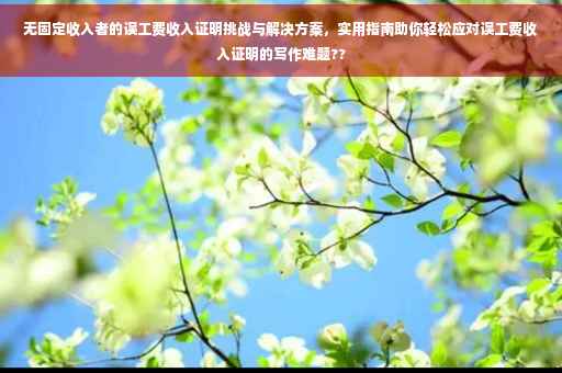 随着社会的多元化发展,自由职业、兼职和临时项目等灵活多样的就业方式越来越受到青睐,这些方式使得人们的收入来源变得多样化且不稳定,当这些无固定收入者在遭遇意外事故、疾病等突发情况时,如何证明自己的误工费收入成为一个重要且复杂的问题,本文将围绕这一主题展开讨论,帮助无固定收入者更好地应对挑战。