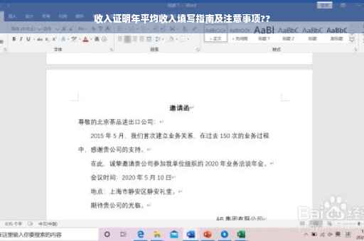 本文是关于收入证明年平均收入填写的指南。文章介绍了如何正确填写收入证明中的年平均收入部分,包括注意事项和填写技巧。帮助读者避免因填写不当而影响个人信用或申请进程。语言简洁明了,内容实用,旨在为读者提供有益的参考和建议。
