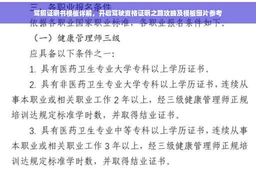 摘要:本文将详细介绍驾照证明书模板的用途和如何开启驾驶资格证明之路。通过本文,您将了解到如何获取驾照证明书模板,包括模板中的关键信息和填写要点。还将提供相关的图片以供参考。本文旨在帮助读者了解并顺利获取驾驶资格证明,顺利上路。