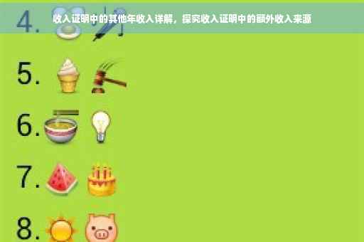 收入证明是一种用于证明个人或单位收入状况的文件,广泛应用于贷款、信用卡申请、房屋租赁等场景,其他年收入,指的是除固定工资、薪水等常规收入之外的其他收入来源,这些收入可能包括奖金、津贴、稿酬、租金收入、兼职收入以及投资收益等,它们在收入证明中单独列示,以全面反映个人的收入状况。
