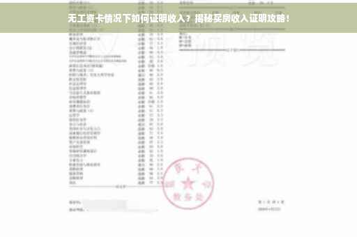 摘要:,,没有工资卡的购房者如何证明收入以顺利购房?本文将为你揭示买房收入证明的秘诀。即便没有工资卡,也有多种途径证明你的收入状况,如银行流水账单、个人所得税纳税证明、劳动合同等。本文为你提供具体方法,让你在购房过程中避免因缺乏收入证明而受阻。