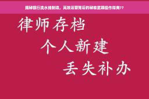 随着金融行业的快速发展,银行业务日益繁忙,银行流水线制造作为一种高效运营模式逐渐崭露头角,本文将深入探讨银行流水线制造的概念、特点、优势以及实际操作流程,带您领略高效运营背后的秘密武器。