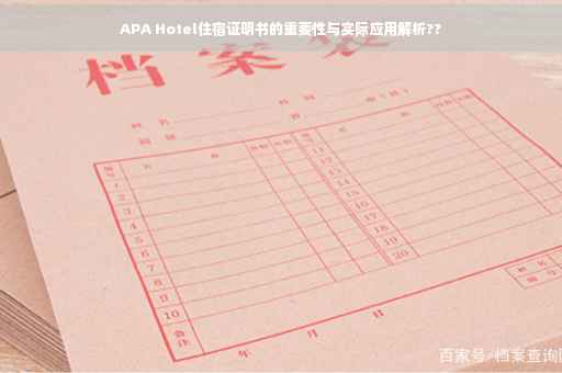 随着全球旅游业的蓬勃发展,越来越多的人选择出国旅游或参加国际会议,在这个过程中,住宿问题成为了旅行者关注的焦点之一,APA Hotel作为一家知名的连锁酒店品牌,其住宿证明书在诸多场合具有重要的作用,本文将详细介绍APA Hotel住宿证明书的内容、用途及其实际应用。
