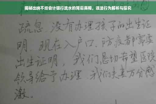在当今社会,随着经济的迅猛发展和企业规模的持续壮大,财务管理已然成为企业运营不可或缺的一环,在财务管理体系中,出纳与会计是两个至关重要的岗位,有时会出现出纳未能及时向会计提供银行流水的情况,这不仅干扰了财务工作的正常流程,还可能为企业带来潜在的风险,本文将深入探讨这一现象的多个角度,揭示其背后的真相及影响,同时提供解决方案和案例分析。