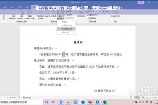 武汉户口没有银行流水可能会给生活带来一些不便,但只要我们采取正确的方法和措施,就能有效解决这一问题,希望本文能对您有所帮助,祝您生活顺利!
