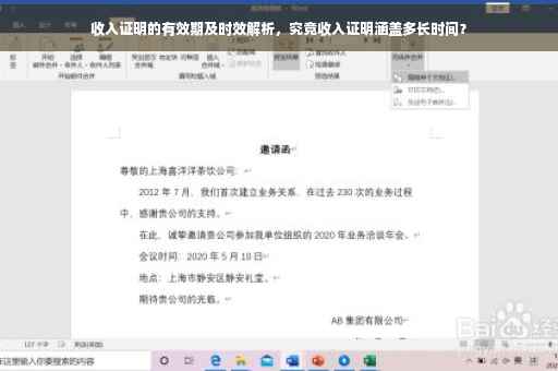 在现代社会中,收入证明已成为许多场合的必备文件,无论是办理贷款、签证申请、租房还是其他重要事务,它都是证明个人经济能力的重要依据,关于收入证明的有效期问题,很多人并不清楚,本文将详细解析收入证明的有效期及时效性,帮助大家更好地理解和使用收入证明。