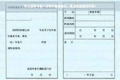 摘要:本文主要探讨务工证明与收入证明之间的差异。务工证明主要证明个人在某单位或企业的就业情况,包括工作岗位、工作时间等;而收入证明则侧重于证明个人的收入状况,包括工资、奖金、津贴等。两者虽然都与就业和收入相关,但证明的内容侧重点不同。深入了解这两者的差异,有助于个人在求职、贷款等场合准确使用。