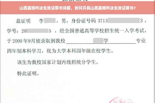 摘要:本文将详细介绍山西离婚判决生效证明书的有关内容,包括其定义、作用以及开具流程等。想要获取山西离婚判决生效证明书,需按照法定程序前往当地法院申请办理,并提交相关证明材料。本文将为您提供一份全面的指南,帮助您了解如何正确开具山西离婚判决生效证明书。