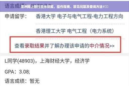 本文详细介绍了澳洲网上银行流水的概念、查看方法、重要性以及操作指南和常见问题解答,希望对您在澳洲使用网上银行时有所帮助,如有更多疑问,请咨询澳洲网上银行客服。