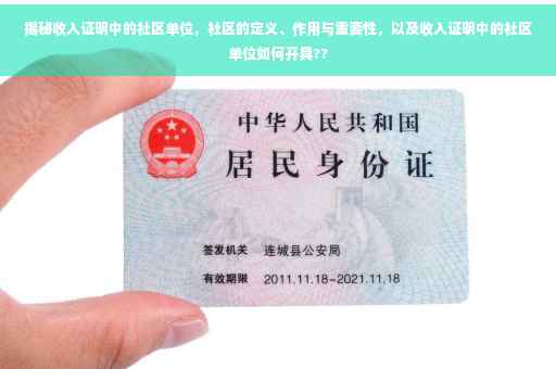 在现代社会中,收入证明是评估个人经济状况的重要依据,广泛应用于求职、贷款、社会福利等领域,而在收入证明中,我们经常可以见到一个名为“社区”的单位,社区究竟是什么单位?它在收入证明中扮演着怎样的角色?本文将为您深入解析社区的定义、作用及其在收入证明中的重要性。