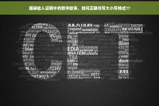 摘要:本文将介绍收入证明的大小写规范,揭示数字背后的故事。在撰写收入证明时,需要注意大小写金额的格式,确保准确无误地表达个人收入情况。本文将指导读者如何正确书写收入证明的大小写,帮助读者避免因格式错误而导致的不必要的麻烦。
