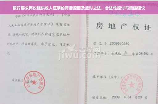 摘要:银行要求再次提供收入证明,其背后原因可能是为了验证客户的还款能力或进行风控管理。银行提出此类要求时,需确保其合法性,客户应仔细核对相关法规。面对这种情况,客户应积极配合提供所需证明,同时保护个人隐私。如有疑问,可咨询律师或银行相关部门。应对之策包括了解银行要求的具体内容、核实合法性并妥善处理个人信息安全。