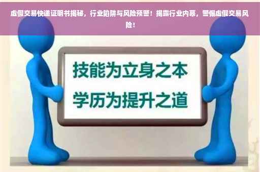 摘要:本文揭露了虚假交易快递证明书的技巧以及行业内的风险陷阱。提醒公众要警惕这种不正当行为,避免陷入其中。文章指出,制作虚假交易快递证明书不仅违法,还可能带来严重后果。建议大家遵守法律法规,诚信交易,远离非法行为。摘要字数控制在100-200字之间。
