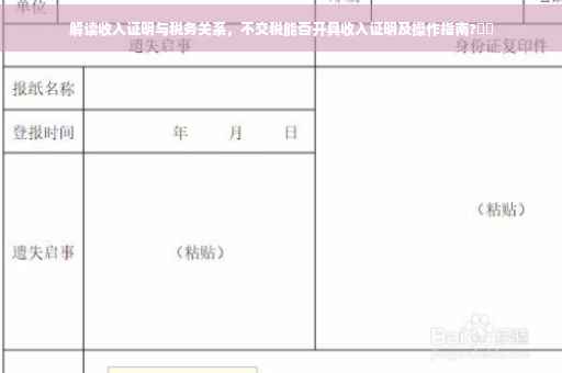 在当今社会,随着经济的发展和个人收入的多样化,越来越多的人开始关注自己的财务状况,收入证明作为一种重要的财务证明材料,广泛应用于办理贷款、申请信用卡、租房等场合,一些人可能会遇到这样的情况:由于种种原因未能及时缴纳税款,这时他们就会产生疑问,没交税能否开具收入证明?本文将详细解读收入证明与税务之间的关系,帮助大家了解真相。
