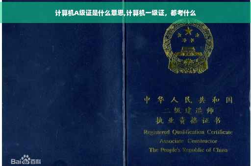 计算机A级证就是计算机一级证书的意思; 全国计算机等级考试是社会考试,就考试性质而言,它是一种重视应试人员对计算机和软件的实际运用能力的考试。考试分为四个等级,不同等级的内容不同,一级主要考核微型计算机基础知识和使用办公软件及因特网(Internet)的基本技能。 一级分为DOS版和Windows版,考核应试者计算机基本知识和使用微机系统的初步能力。