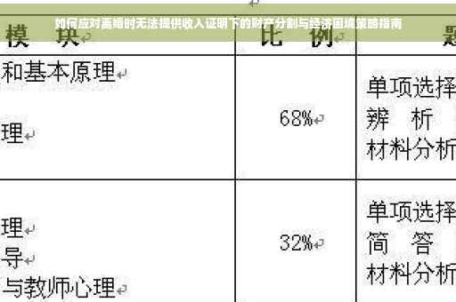离婚是一件复杂的事情,涉及到众多方面的考虑,其中财产分割是极为重要的一环,在离婚过程中,收入证明往往成为证明个人财产状况的关键证据,在某些情况下,一方可能无法提供有效的收入证明,从而引发一系列的经济和法律问题,本文将探讨离婚时无法提供收入证明的情况下的应对策略,帮助当事人更好地应对财产分割和经济困境。