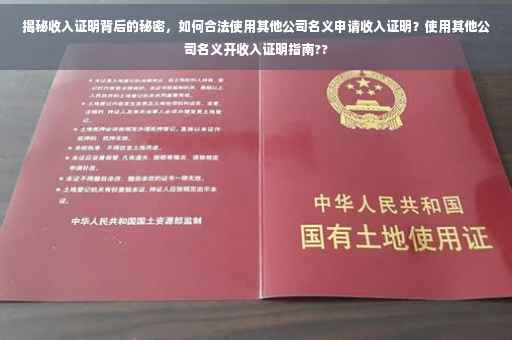 摘要:本文将揭示收入证明背后的秘密,探讨如何合法使用别的公司名义进行申请。文章指出,在某些情况下,可以使用其他公司的名义来开具收入证明,但需要确保合法合规。本文将介绍相关注意事项和操作步骤,帮助读者了解如何合法利用这一方式提高申请成功率。