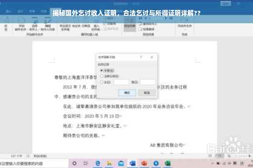 摘要:本篇文章探讨了国外乞讨收入的合法获取与有效证明方式。通过介绍乞讨收入证明的重要性,提供合法乞讨的途径和如何有效证明乞讨所得,帮助乞讨者维护自身权益。文章还强调遵守当地法律法规的必要性,以确保乞讨收入的合法性。对于在国外乞讨的人来说,了解如何合法获取和证明自己的收入至关重要。