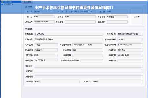 随着现代医学的发展,小产手术已成为一种常见且相对安全的妇科手术,术后恢复期的重视与妥善管理同样不可忽视,本文将围绕小产手术休息诊断证明书这一主题展开,旨在提高大众对其重要性的认识,帮助更多人了解小产手术后的恢复过程。