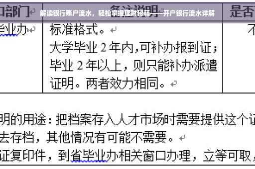 开户银行流水是个人或企业经济活动的重要记录,通过解读流水,你可以了解自己的收支情况,合理规划资金,发现潜在问题,在查看和解读流水时,需要注意保密性、真实性、完整性和合法性,希望本文能助你更好地理解和使用开户银行流水,轻松理财。