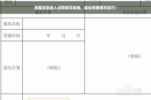 随着房价的稳步上升,越来越多的购房者选择通过贷款来实现购房梦想,在申请房屋贷款过程中,银行或其他金融机构通常需要借款人提供收入证明,以评估其还款能力和资信状况,撰写一份规范、真实的收入证明至关重要,本文将为您详细介绍房屋货款收入证明的写作要点和注意事项。